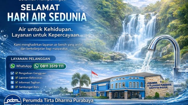 Di balik setiap tetes air yang mengalir ke rumah-rumah warga, ada komitmen yang terus dijaga tanpa henti. Pada momentum Hari Air Sedunia 22 Maret 2026, PDAM Tirta Dharma Purabaya Kabupaten Madiun menegaskan perannya sebagai garda terdepan dalam memastikan ketersediaan air bersih bagi masyarakat. Mengusung tema “Water and Gender”, peringatan tahun ini menjadi pengingat bahwa air […]