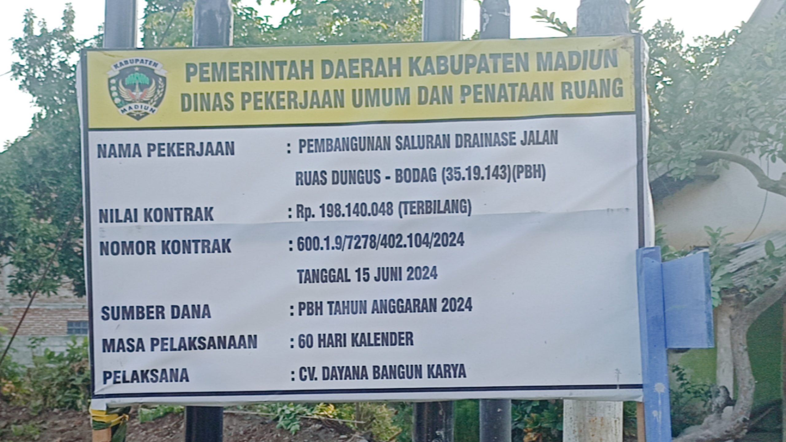 Dikonfirmasi terkait hal ini, Astutik Diah Ningsih, pejabat teknik jalan dan jembatan dinas PUPR Kabupaten Madiun menjawab papan tersebut keliru. Harusnya, kontrak yang tertulis bukanlah Juni melainkan bulan Juli.