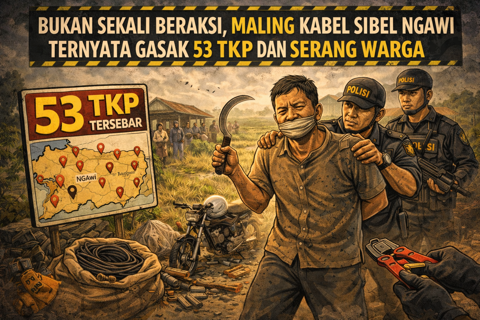 Dari hasil pengembangan dan pemeriksaan intensif, terungkap fakta yang lebih mencengangkan. Tersangka A.S. diketahui telah melakukan pencurian kabel sibel di 53 TKP lainnya yang tersebar di sejumlah kecamatan di Kabupaten Ngawi.