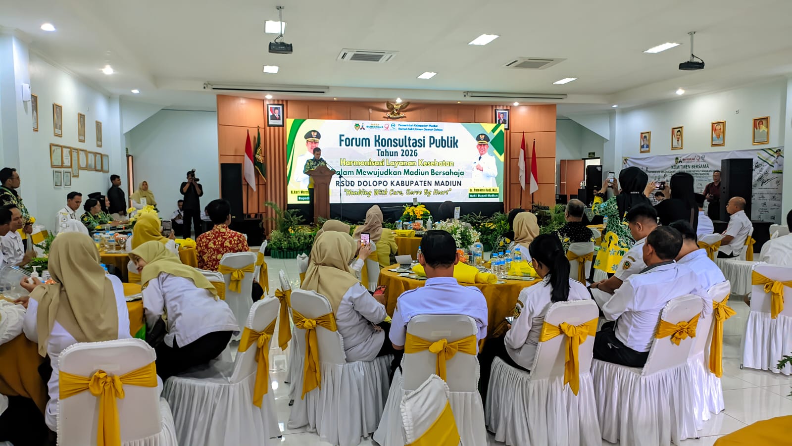 RSUD Dolopo Kabupaten Madiun menyelenggarakan Forum Konsultasi Publik sebagai langkah strategis dalam memperkuat harmonisasi pelayanan kesehatan, sekaligus menegaskan komitmen peningkatan kualitas layanan kepada masyarakat, Rabu (8/4/2026).