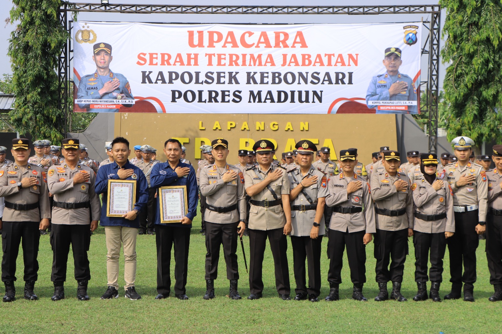 Penghargaan tersebut diberikan kepada Saudara Lutfi Fahrudin warga Desa Tambakmas Kec. Kebonsari Kab. Madiun dan Saudara Oentiono warga Kelurahan Kejuron Kec. Taman Kota Madiun atas kontribusi, kepedulian, serta dukungannya terhadap program Polres Madiun dalam rangka mendukung pemenuhan gizi pelajar menuju generasi sehat dan cerdas.