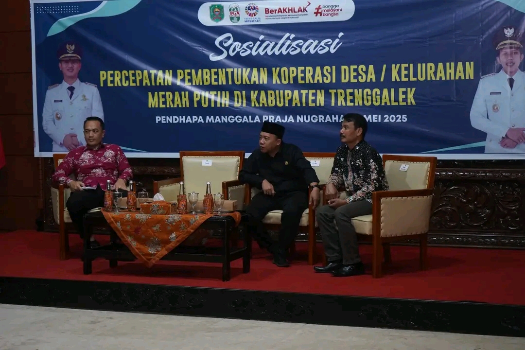 Sekda Trenggalek usai memimpin sosialisasi Koperasi Merah Putih ini menerangkan “alhamdulillah pada hari ini kita sudah ada komitmen. Semua Kepala Desa, para BPD dan Camat siap untuk membentuk Koperasi Desa/ Kelurahan Merah Putih,” ujarnya.