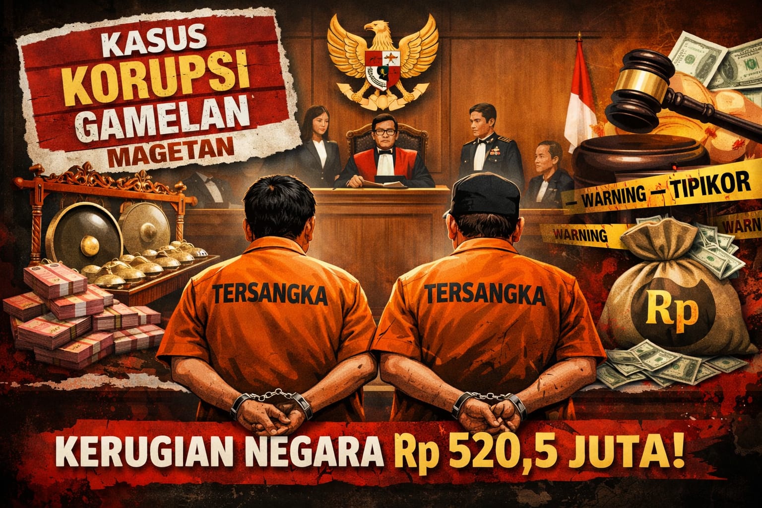 Kasus dugaan korupsi pengadaan alat kesenian gamelan di Dinas Pendidikan, Kepemudaan dan Olahraga (Dikpora) Kabupaten Magetan resmi disidangkan di Pengadilan Negeri Tipikor. Dua terdakwa, Suroso, mantan pejabat pembuat komitmen (PPK), dan Y. Sulistyo Joko Indratno, Direktur CV Mitra Sejati, duduk di kursi pesakitan.