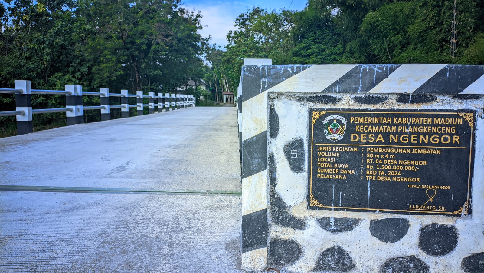 Komitmen Tim Pelaksana Kegiatan (TPK) dan Pemerintah Desa Ngengor Kecamatan Pilangkenceng Kabupaten Madiun patut diacungi jempol. Tahun ini, jembatan baru senilai 1,5 miliar sudah dapat dilalui.