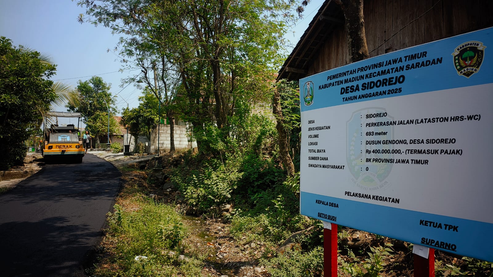 Di lokasi pekerjaan, Setio Budi selaku Kepala Desa Sidorejo mengatakan bahwa anggaran ini didapatkan dari Bantuan Keuangan Provinsi Jatim. Nilainya, sebesar 400 juta rupiah.