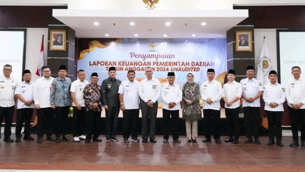 tendensius.com/, Madiun | Bupati Madiun, H. Hari Wuryanto S.H, M.Ak, menghadiri acara penyampaian Laporan Keuangan Pemerintah Daerah (LKPD) unaudited Tahun Anggaran 2024 di Kantor BPK Perwakilan Provinsi Jawa Timur (Jatim) pada Rabu (26/3/2025). Turut mendampingi, Sekretaris Daerah Ir. Tontro Pahlawanto, Inspektur Joko Lelono dan Kepala BPKAD Suntoko.