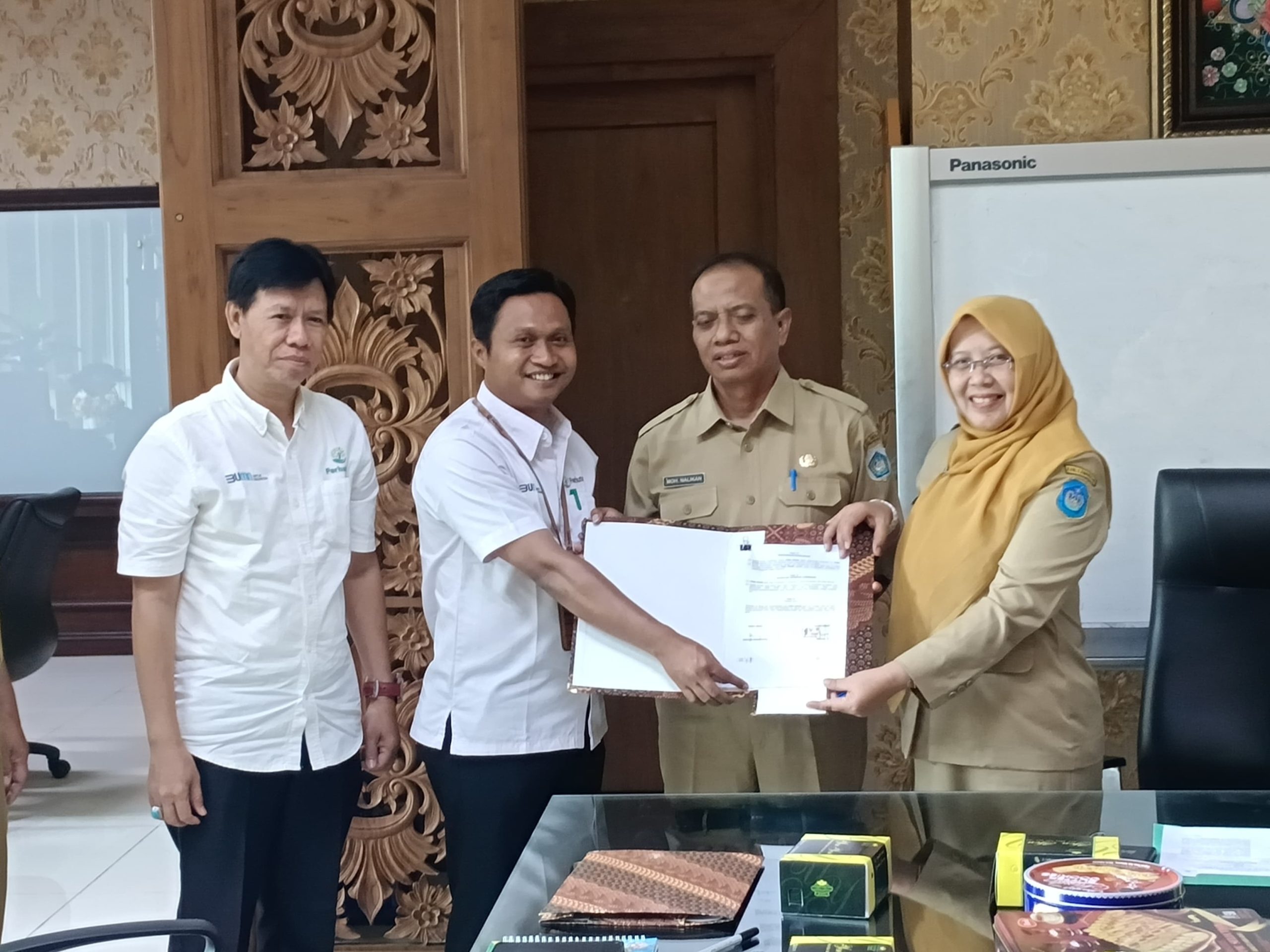 tendensius.com/, Mojokerto | Perhutani Kesatuan Pemangkuan Hutan (KPH) Mojokerto bersama Dinas Peternakan dan Kesehatan Hewan Kab. Lamongan tandatangani Perjanjian Kerja Sama (PKS) dengan obyek tanah aset perusahaan/tanah DK di kantor Pemerintah Daerah Kabupaten Lamongan, Senin (06/01/2025).
