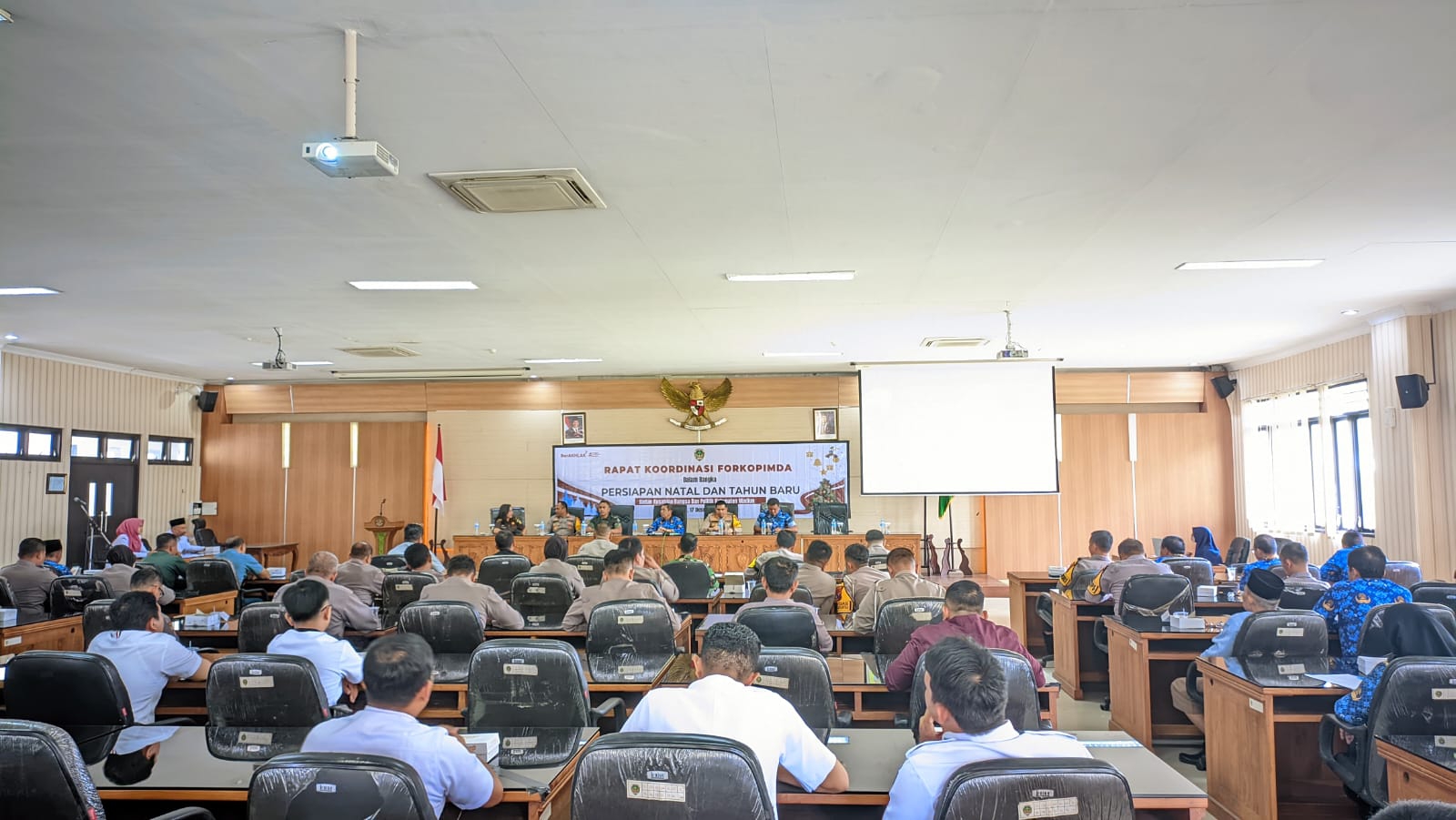tendensius.com/, Madiun | Pemerintah Kabupaten Madiun melalui Bakesbangpoldagri menggelar rapat koordinasi Forum Komunikasi Pimpinan Daerah (Forkopimda) dalam rangka persiapan perayaan Natal dan Tahun Baru 2025. Rapat tersebut yang diadakan di Eka Kapti Puspem Madiun, Selasa (17/12/2024).