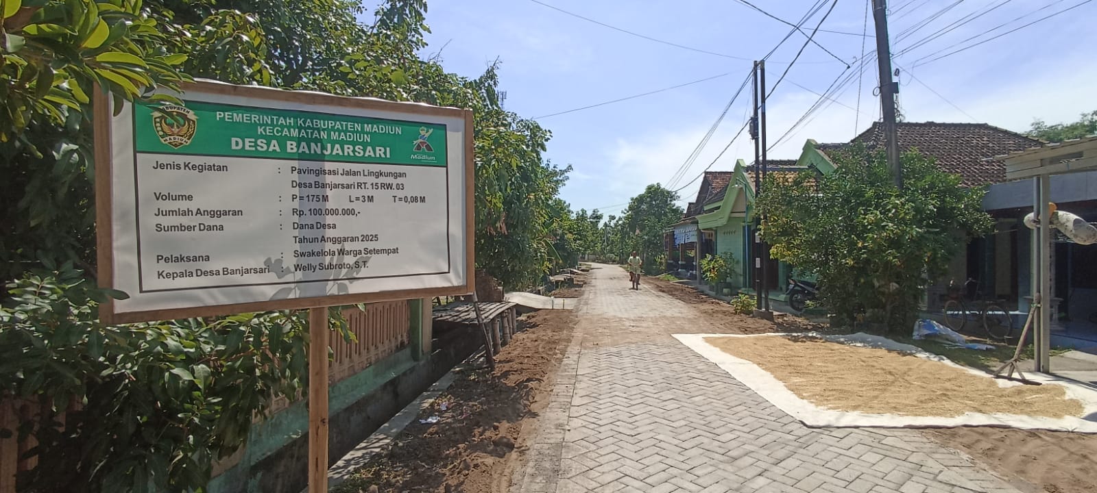 tendensius.com/, Madiun | Pemerintah Desa Banjarsari Kecamatan/Kabupaten Madiun baru saja merampungkan pavingisasi lingkungan. Lokasinya berada di RT 15 RW 03.